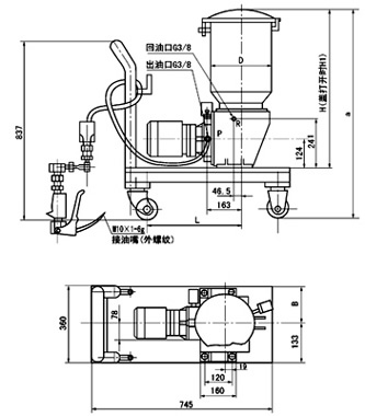 (1)潤(rùn)滑泵的外形尺寸 (2)帶小車潤(rùn)滑裝置外形尺寸 |