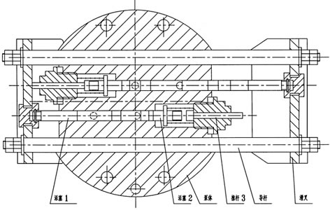 泵體內(nèi)二組活塞,每組活塞由1個(gè)工作塞和2個(gè)控制活塞組成,當(dāng)一組活塞中的工作活塞完成吸油過(guò)程時(shí),另一組活塞中的工作活塞則把潤(rùn)滑脂壓向出油口。如下圖所示,當(dāng)滑叉向左運(yùn)動(dòng)時(shí),上組活塞完成吸油,下組活塞完成壓油,開始新的工作循環(huán)。這時(shí)下組活塞1、2向左運(yùn)動(dòng),活塞2在彈簧力作用下到達(dá)極限位置關(guān)閉出口,而活塞1繼續(xù)向左運(yùn)動(dòng),這時(shí)活塞2和1之間形成真空,其真空度隨活塞1的左移不斷增大,滑叉運(yùn)動(dòng)到極限位置活塞1打開吸油口,潤(rùn)滑脂從吸油口吸入,如彈簧力不足,沒將活塞2推到極限位置,此時(shí)推桿3會(huì)在滑叉的推動(dòng)下強(qiáng)制地把活塞2壓到極限位置,同時(shí)上組活塞1、2、3向左運(yùn)動(dòng),活塞1先關(guān)閉吸油口,被吸入的潤(rùn)滑脂在活塞1的推動(dòng)下向左移動(dòng),當(dāng)活塞2把出油口打開時(shí),活塞2和推桿3 的運(yùn)動(dòng)也就停止,活塞1繼續(xù)左移,把潤(rùn)滑脂從出油口壓出,活塞1、2接觸滑叉也已運(yùn)動(dòng)到極限位置完成半個(gè)循環(huán)的工作,如此周而復(fù)始地循環(huán),二組活塞交替地將潤(rùn)滑油脂從出油口壓送出來(lái),壓出的潤(rùn)滑脂經(jīng)泵裝置連接法蘭上的過(guò)濾器過(guò)濾后向系統(tǒng)供送。
