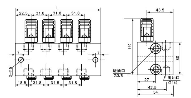 | 若需相應(yīng)上下出口合并時,只需將上出油孔內(nèi)的壓緊螺塞用6mm內(nèi)六角扳手?jǐn)Q出,取出分油套通孔向下裝入,再擰緊壓緊螺塞,此時上出口用G1/4螺塞封堵以防灰塵侵入。 |