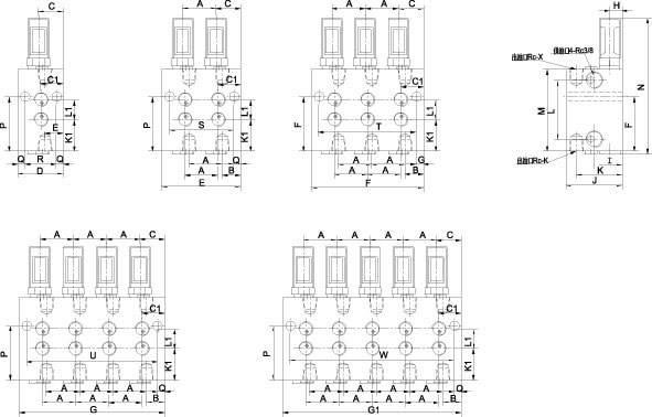 該系列雙線分配器在正面和上、下面均設(shè)有出油口,為雙向出油形式,正面上排與上面對(duì)應(yīng)出油口貫通,正面下排與下面對(duì)應(yīng)出油口相貫通,根據(jù)配管方向需要任意選擇,分配器活塞正反向動(dòng)作分別從上下側(cè)出油口排出潤(rùn)滑脂一次,為方便增大倍量的給油量,易改奇數(shù)出油,在上下對(duì)應(yīng)的出油口間還設(shè)有合二為一的結(jié)構(gòu),使用時(shí)只需擰開(kāi)下出口內(nèi)的螺釘,不用的出口用R1/4 螺塞封堵即可。KW系列雙線分配器可以從指示桿的動(dòng)作直接觀察分配器的工作情況,還可以通過(guò)調(diào)整螺釘在規(guī)定的范圍內(nèi)方便地調(diào)整各個(gè)出油口的給油量。