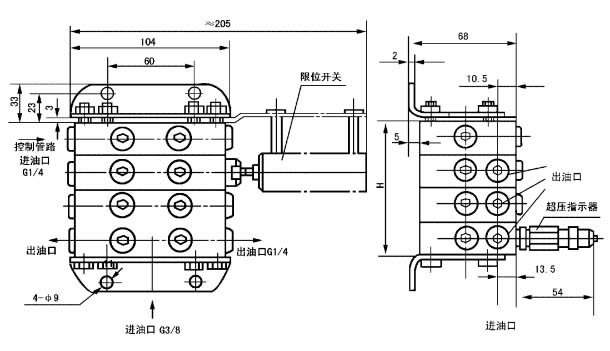 4、JPQ2型、JPQ4型分配器根據(jù)需要可以安裝超壓指示器。