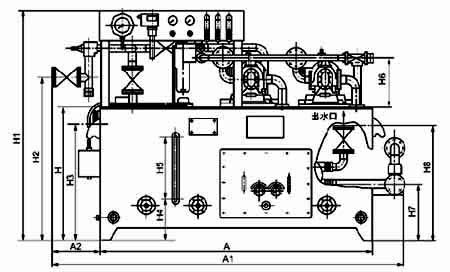 4、型號后帶“A”者為有壓力罐的裝置,可滿足發(fā)生意外事故或突然停電時(shí),儲存在壓力罐中的油液可作臨時(shí)壓力油源向系統(tǒng)短時(shí)供油,但需注意壓力罐上的一般單向閥應(yīng)水平安裝,不得向下安裝(對較小的旋啟式單向閥允許向上安裝),附圖中應(yīng)作相應(yīng)改變。