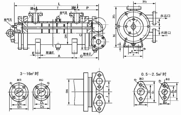 與GLLQ型列管式冷卻器相似,產(chǎn)品適用于冶金、礦山、輕工、電力、化工等工業(yè)部門的液壓與潤滑裝置,將熱工作油冷卻到要求的溫度;冷卻器的設(shè)計最高溫度為100℃~120℃,工作壓力≤1.6MPa,傳熱系數(shù)為348~407w/m2.k,(若采用翅片管換熱,則傳熱系數(shù)為523~580W/m2·k,但允許介質(zhì)粘度為10~50cSt)。下面列出的LQ型冷卻器則規(guī)定介質(zhì)粘度為10~326cSt,主要技術(shù)參數(shù)如下表: |