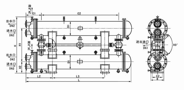 1、表列數(shù)據(jù)為二流程列管式雙聯(lián)油冷卻器,若需要可選用四流程、六流程、裸管或翅片冷卻管的冷卻器。