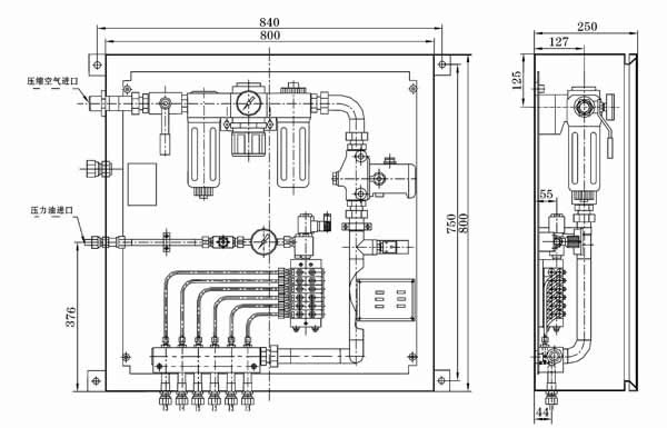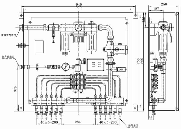 | 油氣衛(wèi)星站由二位二通電動止回閥、KM型單線油分配器、氣動三聯(lián)件、二位二通氣動電磁閥、油氣混合器以及各種連接件等組成。潤滑油供應(yīng)站供送過來的壓力油,經(jīng)二位二通電動止回閥、KM型單線油分配器定量分配,分配出的若干份油分別送至各口的油氣混合器進行油氣充分混合,而后分別向后級的油氣分流器進行再分流或直接供向潤滑點。衛(wèi)星站的工作控制接受油氣潤滑系統(tǒng)的主PLC電氣控制箱控制。 |