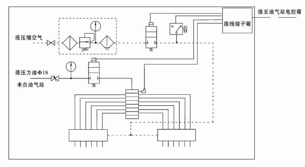 2、油氣衛(wèi)星站的進氣接口必須與工廠壓縮空氣(允許使用氮氣)供氣管線相連,決不允許使用其它介質(zhì)的氣體,以免發(fā)生安全事故。
